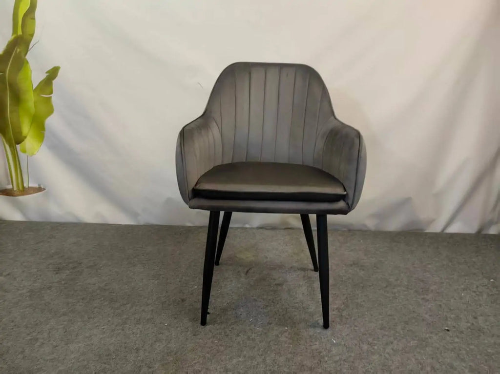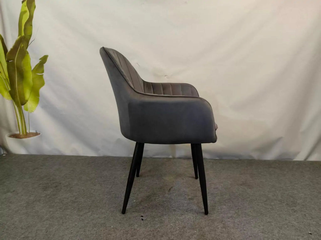 Трапезният стол ВМ313 е перфектното решение за вашата трапезария, кухня или дневна. Изработен с висококачествена кадифена тапицерия в тъмно сив цвят, този стол съчетава луксозен вид, комфорт и модерен дизайн.