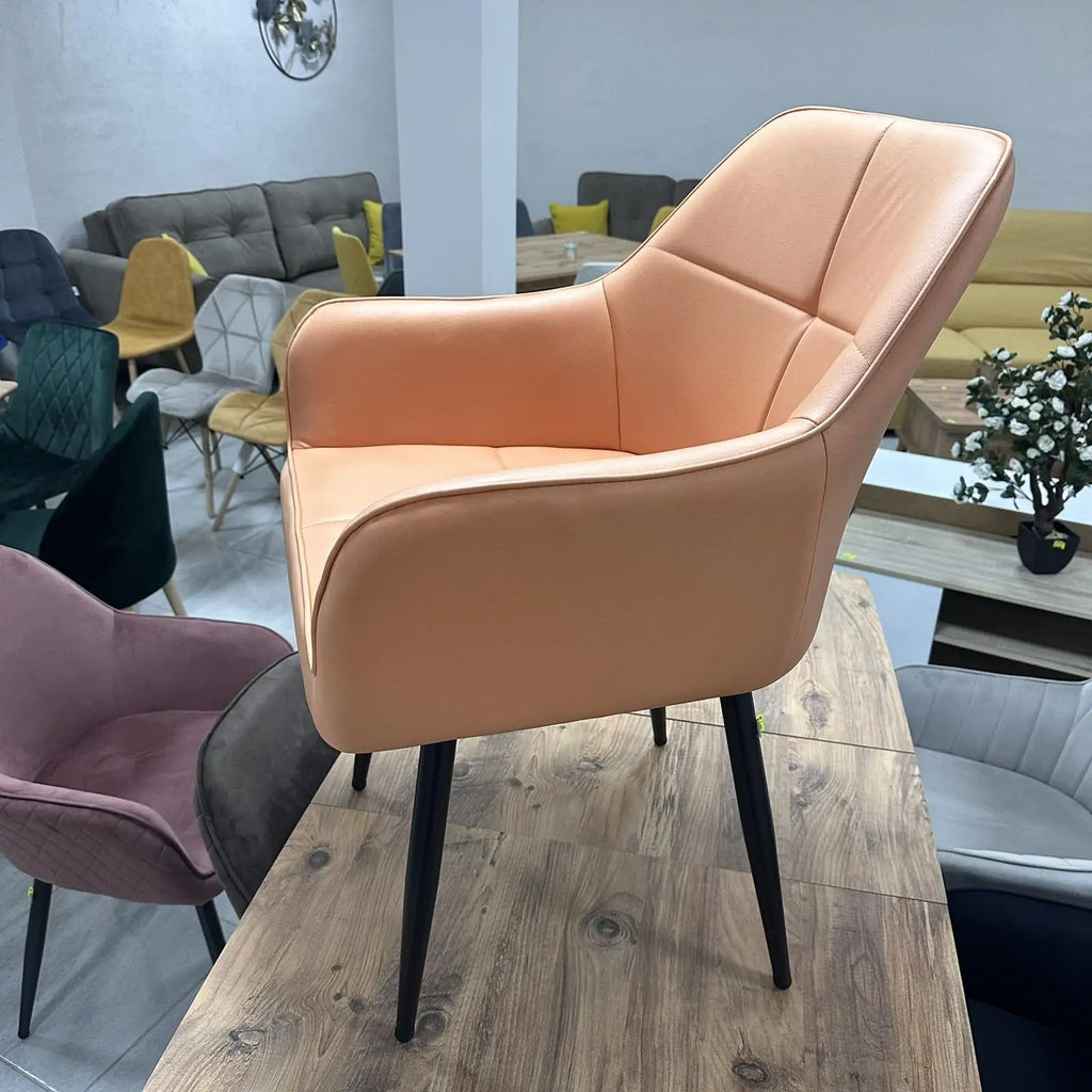 Трапезен стол Деко - Модерен текстил в пастелно оранжев цвят