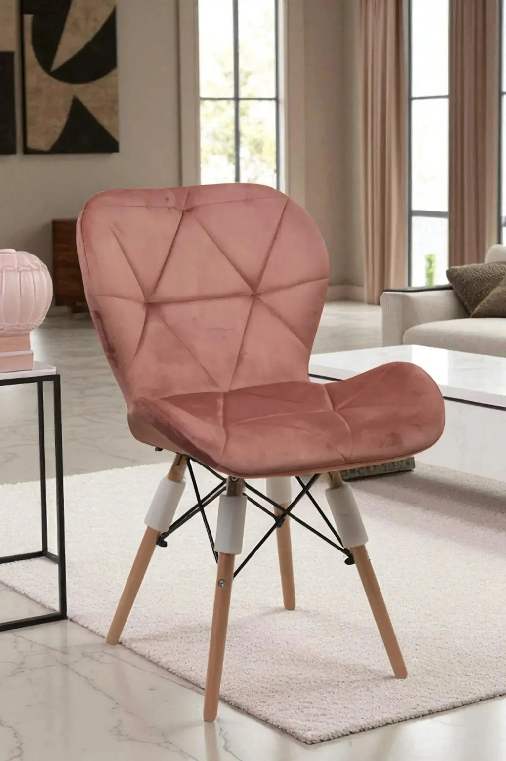 Трапезен стол “Мелина” – Розово кадифе е перфектният избор за всеки, който търси не само удобство, но и елегантно мебелиране за своя дом или офис. Изработен с внимание към детайлите, този стол съчетава висококачествено кадифе и съвременен дизайн, който ще се впише безупречно във всяко пространство, добавяйки стил и лукс. Независимо дали е за домашна трапезария, офис, квартира или Airbnb, стол Мелина ще превърне всяка стая в уютно и елегантно място.