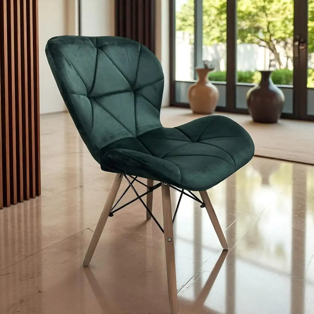 Този трапезен стол с модерен дизайн е истинско бижу за всяко интериорно пространство. С елегантната си декорация и внимателно подбраните материали, той ще привлече вниманието и ще придаде изискан вид на всяка стая. Проектиран с мисъл за комфорт, облегалката му е извита по начин, който осигурява отлична поддръжка на гърба, а седалката с велурена тапицерия предлага мекота и уют при сядане.