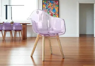 Трапезният стол Тея е перфектното решение за вашата трапезария, кухня или дневна. Изработен от висококачествен поликарбонат в нежен розов кристален цвят, този стол съчетава издръжливост, комфорт и модерен прозрачен дизайн.