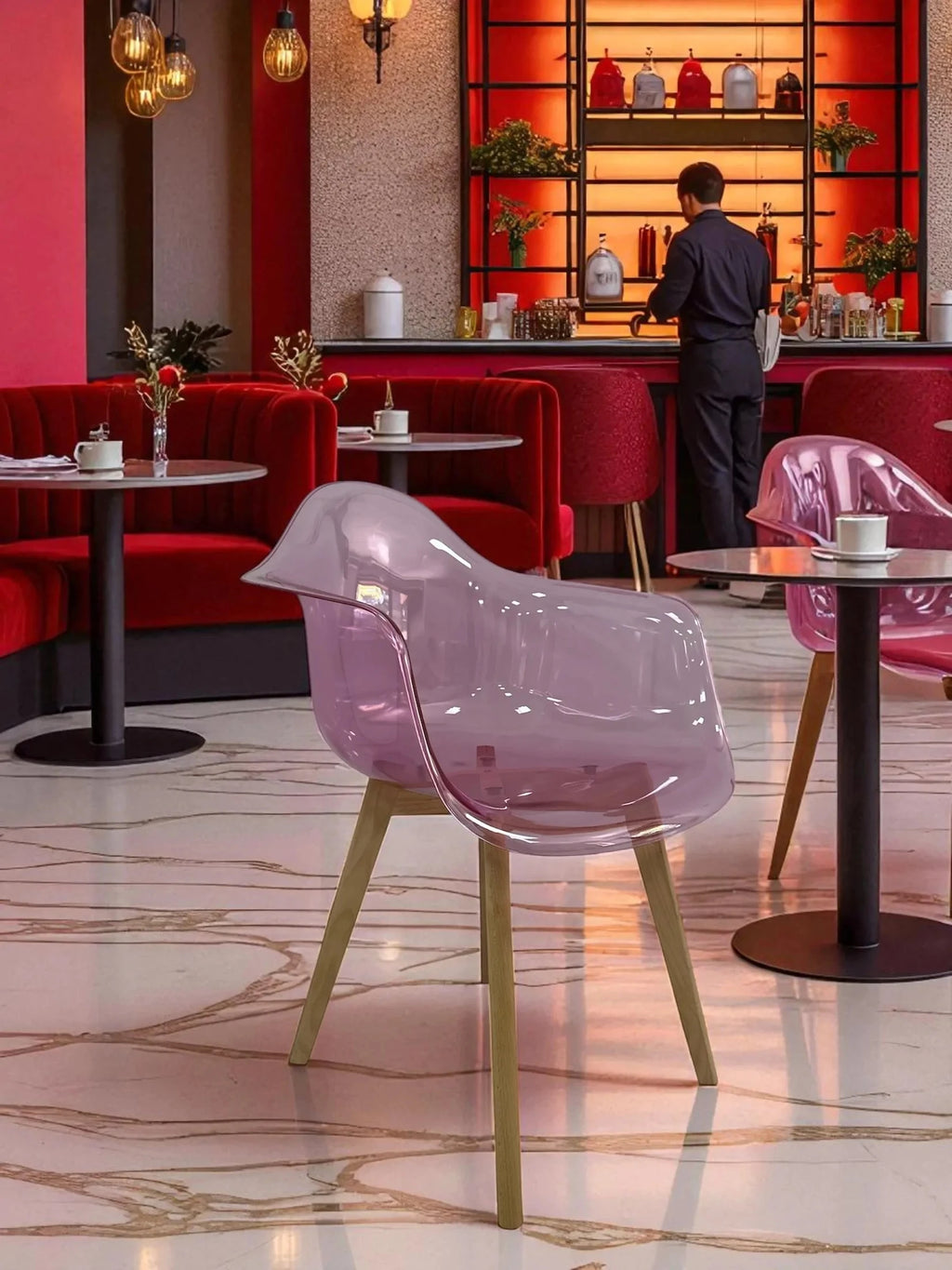 Трапезният стол Тея е перфектното съчетание на модерен дизайн и функционалност. Изработен от висококачествен прозрачен поликарбонат в нежен розов цвят, този стол добавя елегантност и свежест на всяко пространство.