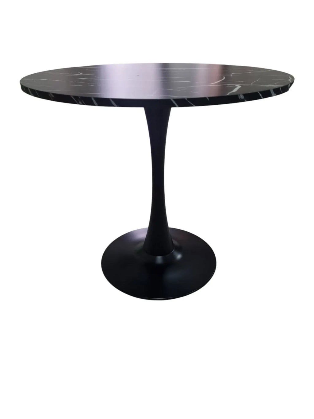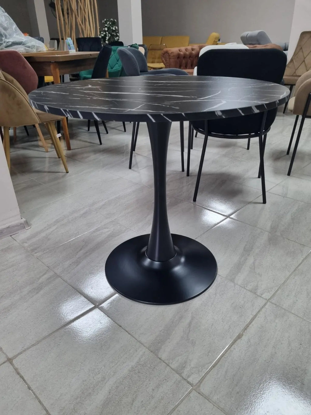 Трапезната маса Мери е перфектното решение за вашата трапезария, кухня или дневна. С кръгъл плот от МДФ в елегантен черен цвят и стилна метална основа тип лале, тази маса съчетава модерен дизайн, стабилност и практичност.